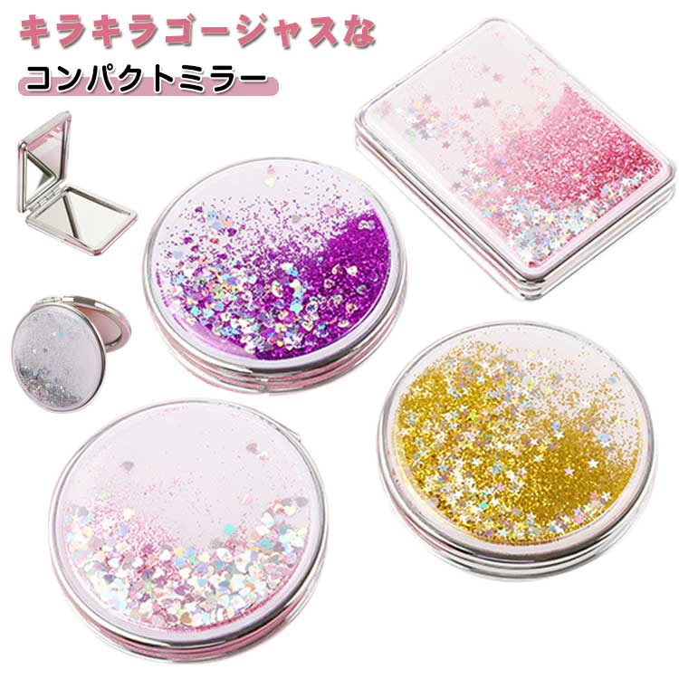 ■おしゃれ 鏡 折りたたみ 鏡 コンパクト かわいい キラキラ 可愛い ハンドミラー コンパクトミラー 手鏡 両面 持ち歩きに便利 メイク 折り