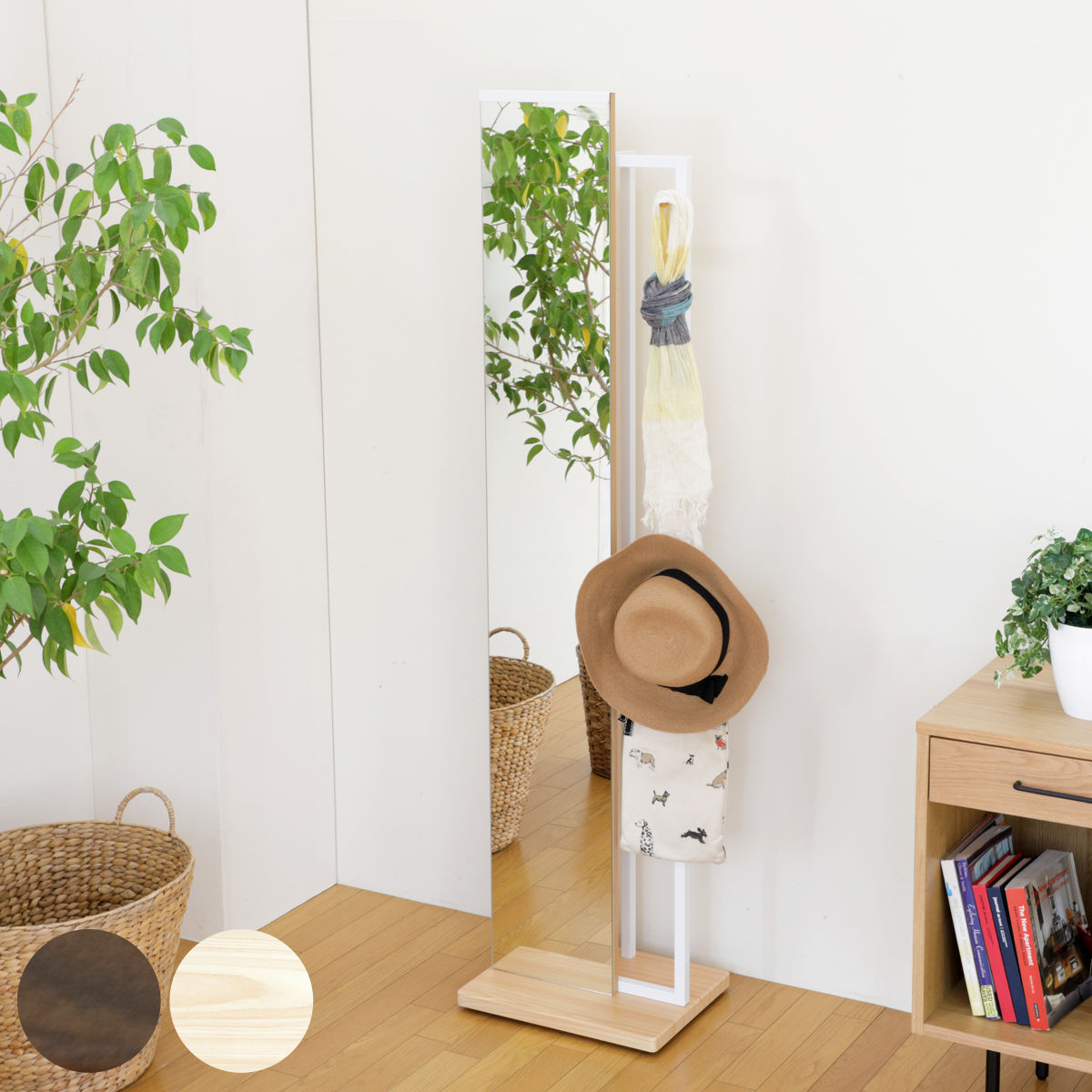 ■スタンドミラー 姿見 ハンガー付 幅40cm ( ミラー 全身 鏡 かがみ キャスター付 コートハンガー ハンガーをかけれる スリム 背面 ハンガ