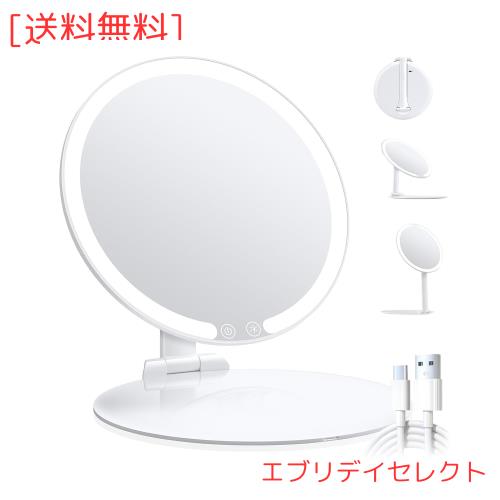 ■MILEDUO 鏡 LED 化粧鏡 折立鏡 卓上 ライト付き 女優ミラー 折立ミラー 3光色 無段階調光 色再現性CRI 95% HDミラー 角度は自由に調整