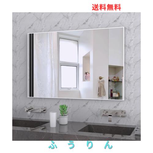 ■BEAUTME 洗面鏡 浴室鏡 壁掛け鏡 姿見鏡 全身鏡 アルミ 壁掛けミラー おしゃれ 鏡 洗面所 化粧 玄関 お風呂 ウォールミラー 白い,91.5x61