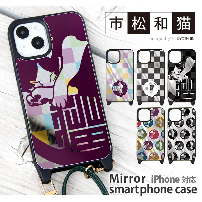 ■iPhoneケース ミラー 鏡 iPhone15 Pro iPhonexr iphone13 iphone12 アイフォン14 ミラーケース カバー デザイン 市松和猫 猫 ねこ 和柄