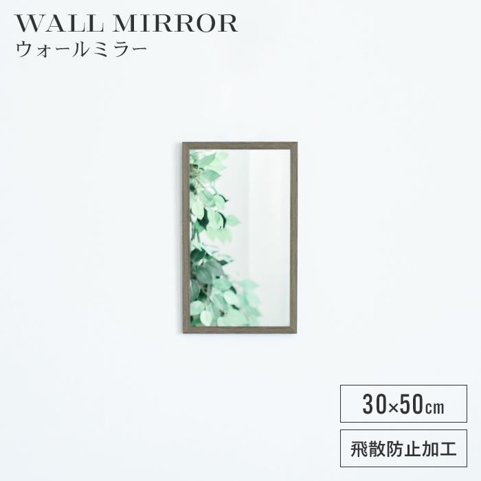 ■【値下げ】鏡 壁掛け ウォールミラー 30×50cm おしゃれ 木目柄フレーム 軽量 壁掛けミラー 飛散防止 モダン 北欧 省スペース