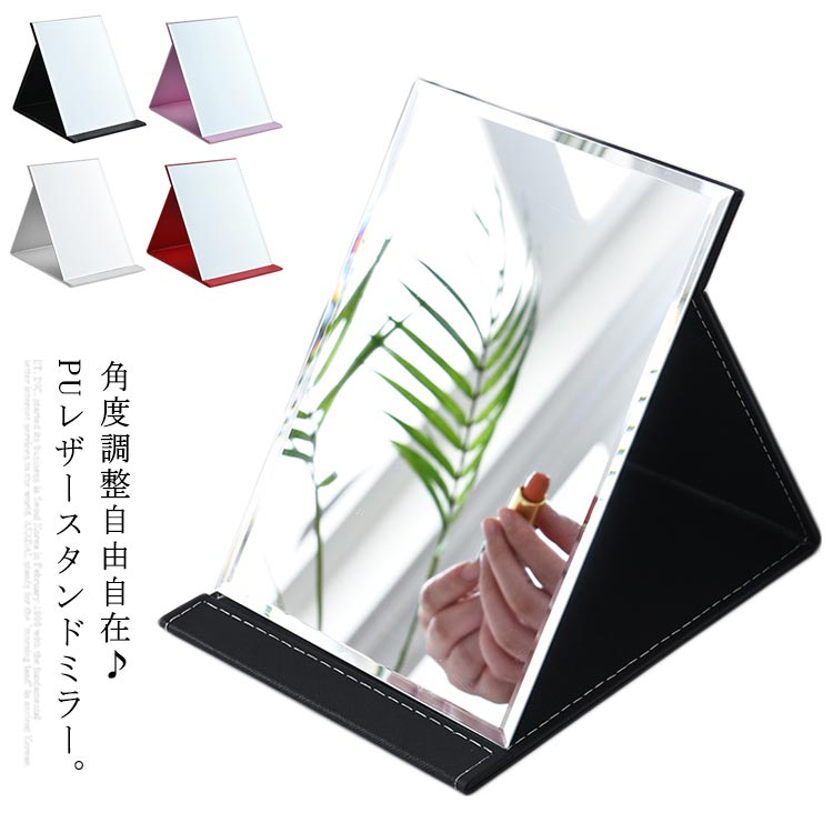 ■送料無料 角度調整自由 スタンドミラー 折立ミラー 卓上鏡 PUレザーミラー 鏡 携帯 コンパクト 卓上ミラー メイク 学生寮 折りたたみ