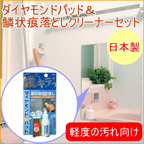 ■ダイヤモンドパッド&鱗状痕落しクリーナーセット (TU-65S) 日本製 浴室 鏡 ガラス 掃除 クリーナー ウロコ 汚れ