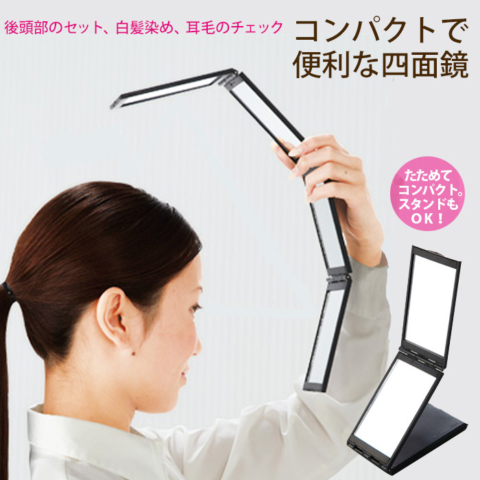 ■4面鏡 どこでもミラー ブラック 四面ミラー 頭頂部 ミラー 鏡 折りたたみ