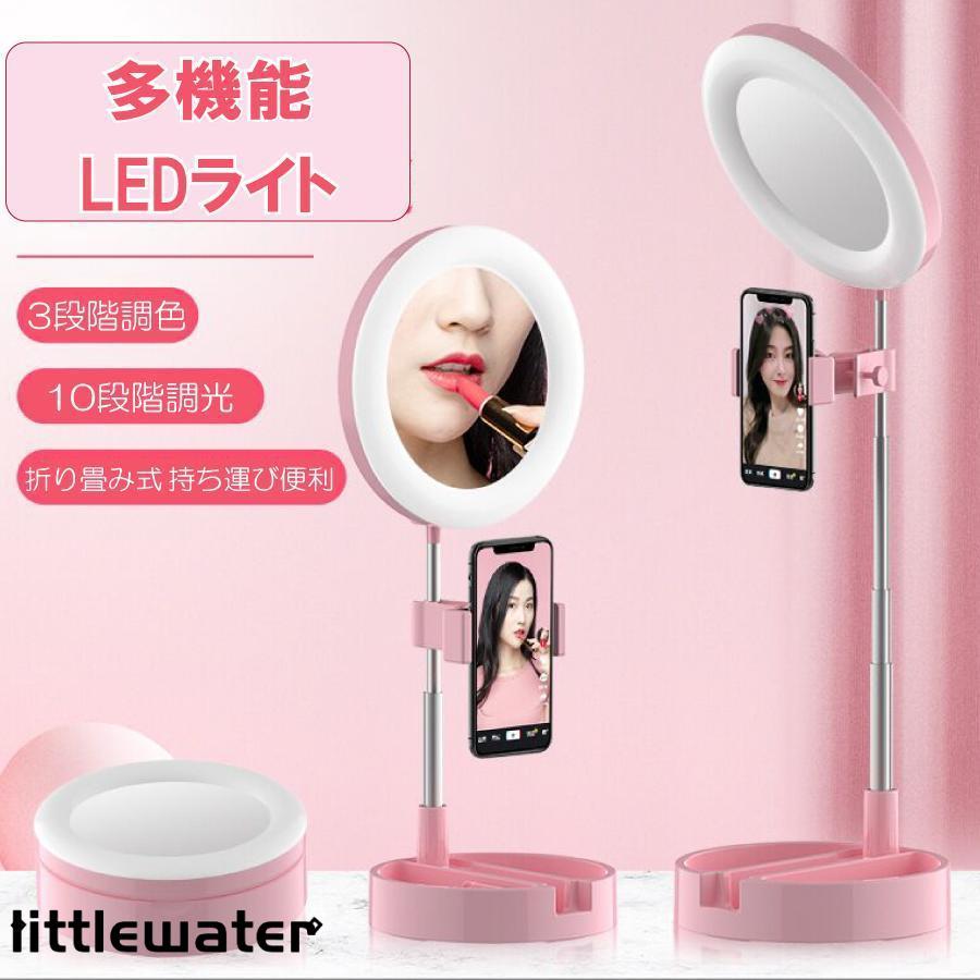 ■リングライト 折畳み式 スタンド一体式 LED 撮影 照明 収納 鏡 ビデオ通話 動画撮影 映画鑑賞