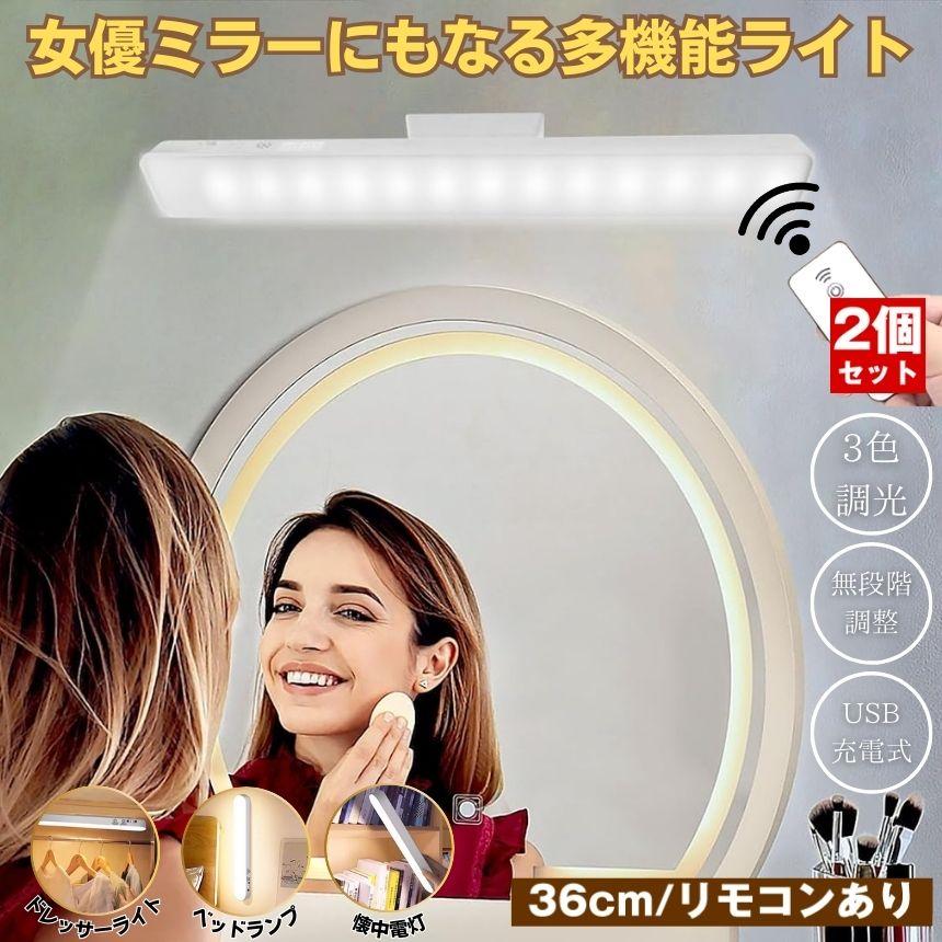 【2個セット】 鏡 女優ミラー ドレッサー ライト LED かがみ ミラー 化粧鏡 懐中電灯 ハンディライト ランプ ベッド 女優 ライト 36cm リモコン付き
