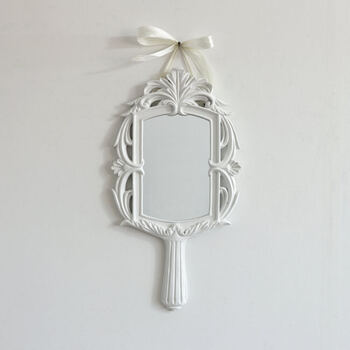 ■手鏡型ウォールアートミラー 鏡 壁飾り 壁掛け リボン付き ホワイト 送料無料