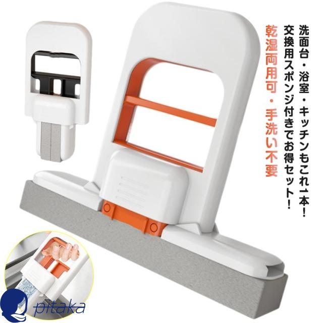 ミニモップ スポンジ 小型 軽量 ハンディモップ スポンジぞうきん 壁 鏡 台所 キッチン用 水拭き モップ 交換用スポンジ付き 乾湿両用 手洗い不要 お掃除グッズ 風呂掃除 ポータブル 片手操作可能 家庭用 風呂掃除 送料無料