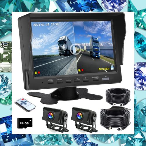 ■バックカメラモニターセット バックモニター 7インチIPS液晶モニター AHDカメラ2台搭載 ガイドライン表示/非表示 2分割表示対応 正像・鏡