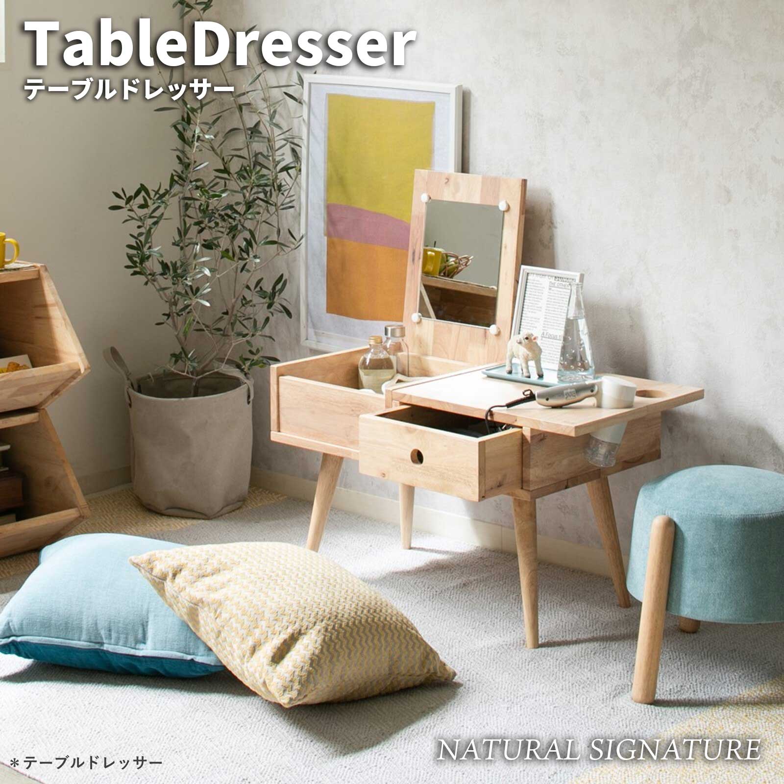■NATURAL SIGNATURE ナチュラルシグネチャー テーブルドレッサー (ローテーブル センターテーブル 化粧台 メイク 引出し 収納 鏡 天然木