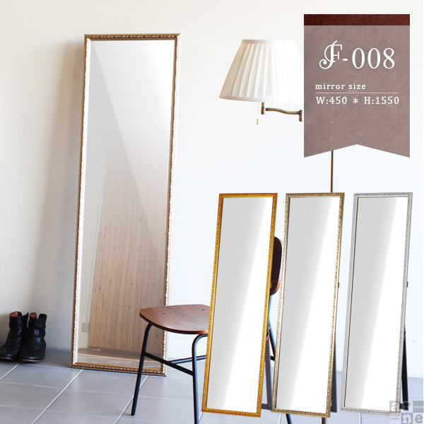 F-008SM4015サイズ:幅450 奥行40 高さ1550 mmスタンド時奥行:370mmミラー部サイズ:幅390 高さ1500 mmミラー厚:5mm梱包サイズ:約幅480 奥行70 高さ1640 mm材質:本体木製、ポリレジン樹脂 仕上げゴールド:銅箔/シャンパンゴールド:アルミ箔コーティングの上からラッカー塗装/ホワイト:ラッカー塗装カラー:3色本体重量:11kg日本製完成品飛散防止処理(背面)壁掛け用フック・掛ひも付属ご注文状況により納期に変動がございます。最新の納期情報はカラー選択時にご確認ください。※オーダー商品につき、ご注文のキャンセル・変更につきましてはお届け前でありましても生産手配が済んでいるためキャンセル料(商品代金の50%)を頂戴いたします。※北海道・沖縄・離島は送料別途お見積り【ご注意】離島・郡部など一部配送不可地域あり。不可地域は通常配送便での玄関渡し建物の形態によっては別途追加料金を頂戴する場合あり吊上作業などが必要な場合、追加料金はお客様ご負担確認不十分などの理由による返品・返金不可商品・搬入経路のサイズ等充分にご確認願います0000a02634/000