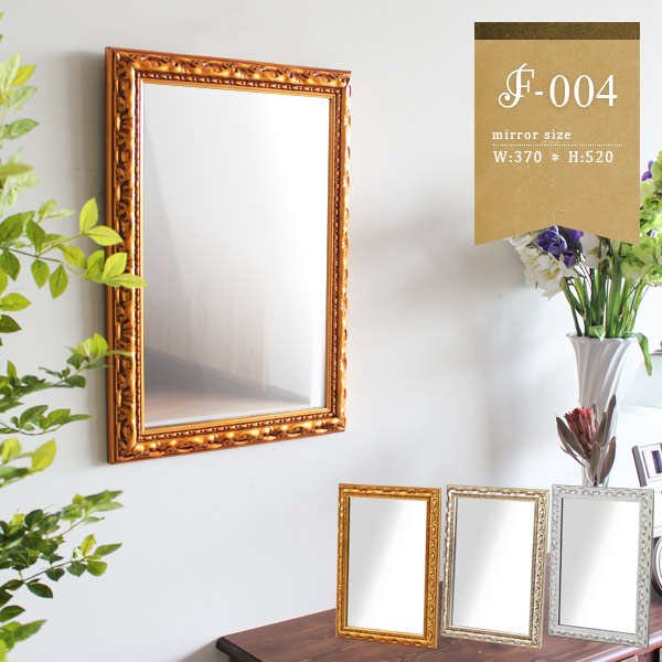 ■鏡 壁掛け おしゃれ ヨーロピアン 洗面鏡 ロココ調 ミラー 壁掛けミラー ウォールミラー 玄関 幅37cm 高さ52cm F-004WM3045 ◇