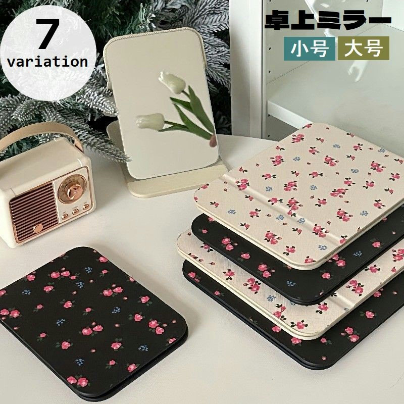 ■卓上ミラー 鏡 スタンドミラー 折りたたみ 化粧鏡 四角形 スクエア 花柄 かがみ レディース 女性 折り畳み テーブルミラー