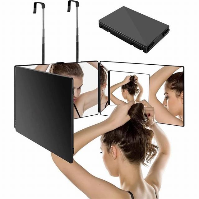 【完璧なメイク】360度回転設計の2024最新版三面鏡、あらゆる角度から頭と顔などを快適に見ることができ、完璧なメイクを作り上げます、ヘアカット、化粧、髪染め、さげ編み、毛先切りなど、様々な用途があります。 【様々な用途で使用可能】1.伸縮アームデザイン、あらゆる場所にぶら下げます。2.壁に無痕フックで固定して使用することができます。3.机の上に置いて、普通の鏡のように使用することができます。どの方法で使っても、いつでも鏡を移動でき、必要なシーンに鏡を簡単に転換することができます。化粧台?洗面台?部屋?楽屋などに大活躍でaす!【ハイビジョンガラス】高品質なHD鏡面を採用し、外観はABS素材で作られ、衝突防止、転倒防止の機能を持っています。縁が厚くて頑丈で、発送するときには、ミラーとミラーの間に保護フィルムが付けます。家や旅行にも使いやすいです。 【高品質】高品質な本物のガラスで、 外観はABS素材で作られ、衝突防止、転倒防止の機能を持ちます。縁が厚くて頑丈で。 家や旅行にも使いやすいです。