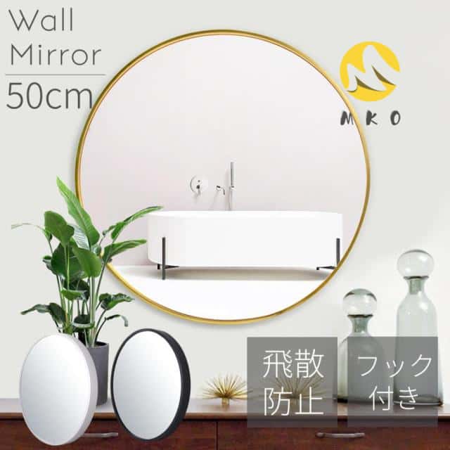 ■鏡 壁掛け ミラー 丸型 飛散防止 ウォールミラー 50cm 姿見 姿見鏡 おしゃれ 洗面所 アンティーク ミラー インテリア 壁掛け鏡 丸ミラー