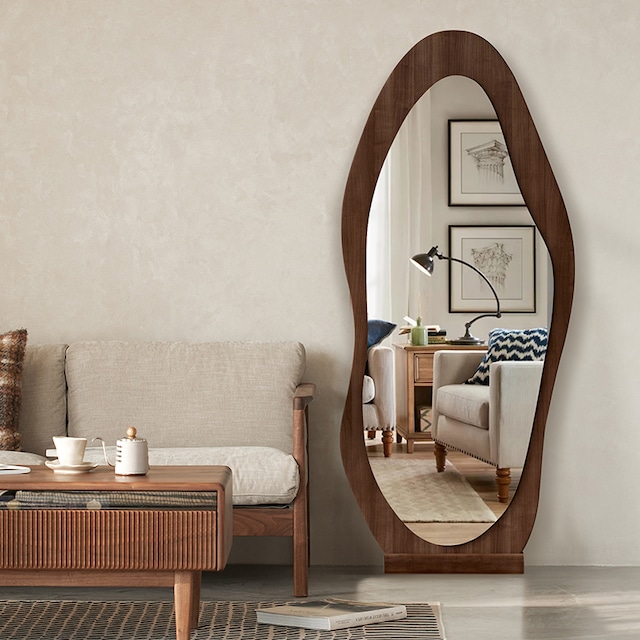 壁掛けミラー ウォールミラー ミラー 鏡 壁掛け おしゃれ 鏡 ウッドフレーム ウェーブ アーチ 天然木 姿見 全身鏡 韓国雑貨 北欧 インテリア 韓国インテリア