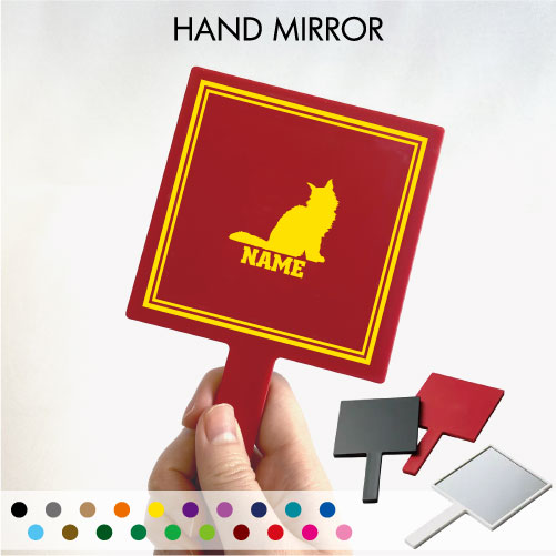 ■メインクーン 名入れ手鏡 コンパクトミラー メイク道具 携帯ミラー ハンドミラー スクエア シンプル 可愛い コスメ 美容 ミラー 鏡 猫