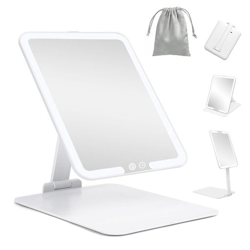 ■MILEDUO 鏡 折立鏡 卓上 ライト付き 女優ミラー 化粧鏡 折立ミラー 3光色 無段階調光 角度は自由に調整 USB充電式 消し忘れ防止機能 LED