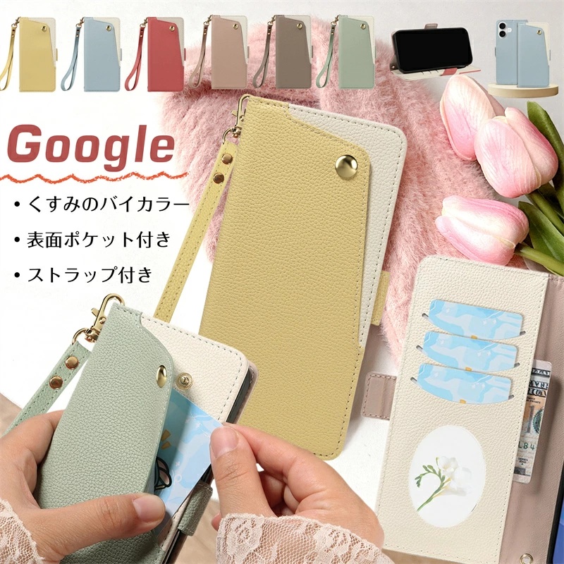 ■表面ポケット/鏡/ストラップ付き Google Pixel9a Pixel10a Pixel 7 aケース スマホケース 手帳型 大人かわいい Google Pixel 9a 6a 7a 8a