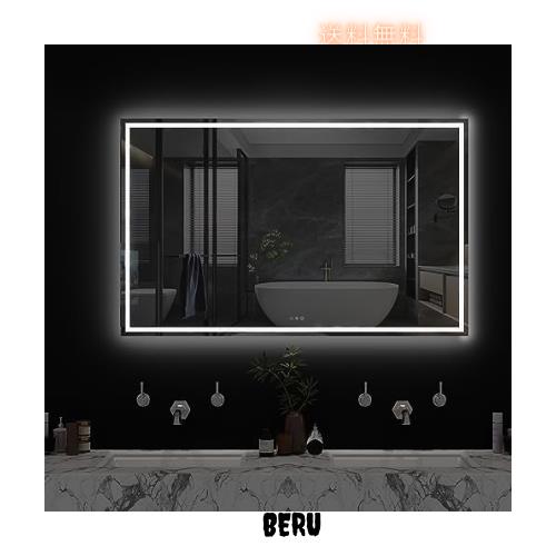 ■Sunrosa ミラー 鏡 LED 壁掛け スチールミラー/強化ガラス 女優ミラー 洗面台 浴室くもり止め鏡 おしゃれ 三色調光&記憶機能 曇り止め