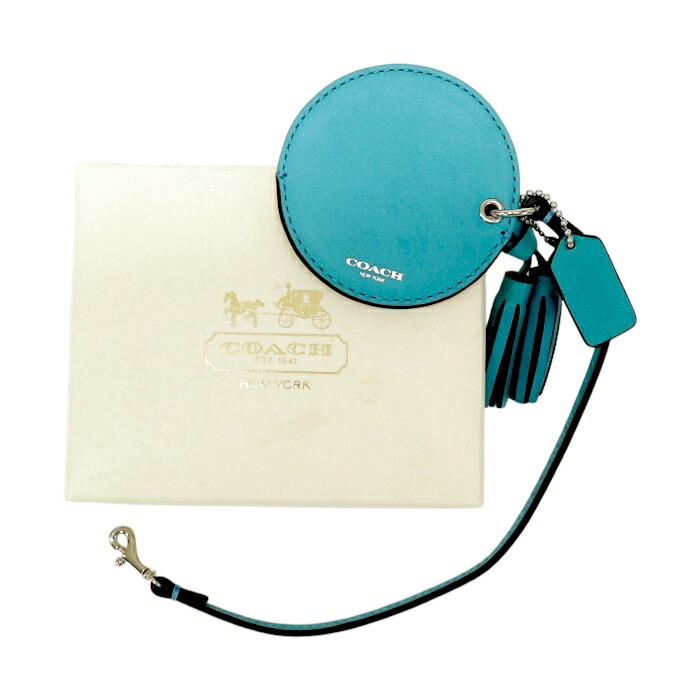 ■【Aランク】 コーチ COACH ミラー バッグチャーム フリンジ付き レザー バッグチャーム 鏡 レディース ブルー 正規品 美品 中古 mbl16012