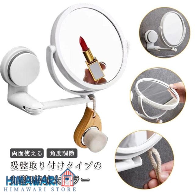 洗面台 アームミラー 洗面 鏡 浴室鏡 拡大鏡 拡大鏡 ミラー メイクミラー 両面使える 壁掛け 3倍 角度調節 洗面所 メイク 化粧 3倍 ホテル 吸盤 角度調整 風呂 浴室 バス