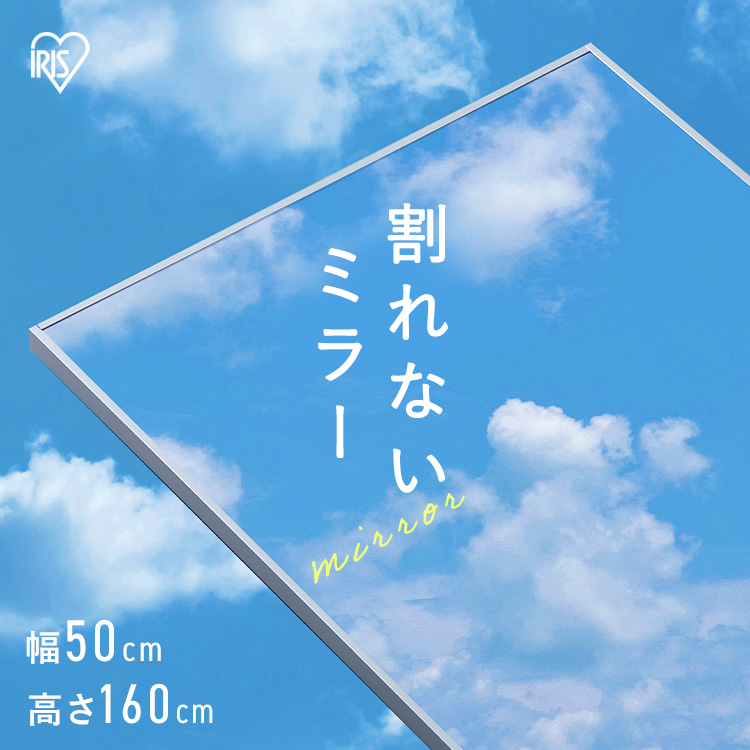 ■鏡 壁掛け 姿見 割れない鏡 50×160 全身鏡 ウォールミラー 全身 壁掛け鏡 姿見鏡 ミラー スリム 軽量 おしゃれ 賃貸 約30 アイリスオー