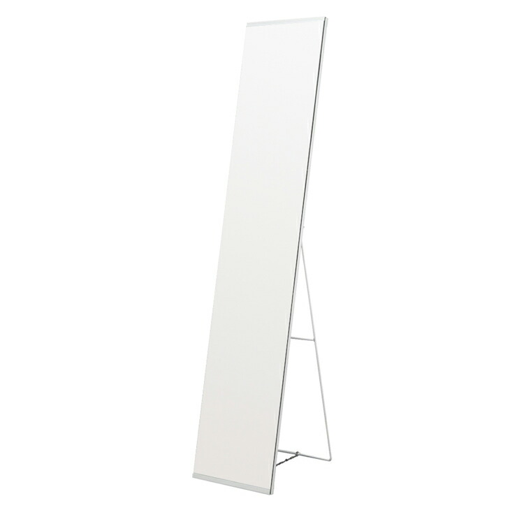 スチール 幅30 高さ150 スタンドミラー ホワイト 鏡 ミラー 姿見 スリム 全身 ミラー 3mm厚 スタンドミラー【商品番号:25110069】