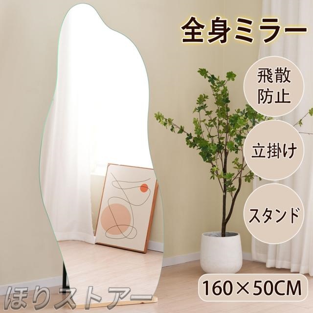 【商品仕様】全身鏡 韓国風 オシャレ サイズ:幅60cm 高さ160cm、壁掛け/立てかけミラーの2WAYスタイルとなっております 重さ:およそ9.5kg 【ユニークなデザイン】姿鏡の形状は不規則なデザインを採用しています。足跡のような形状が全身鏡 おしゃれをユニークで目を引くものにし、どのスペースでも非常に目立ち、部屋を上品に演出します 【耐久性のある品質】スタンドミラーは、高品質なフロートアニールガラスとプレミアムシルバーバックガラスパネルを使用しており、歪みや変形を防ぎ、リアルなHD画像を提供します。プレミアムシルバーバッキングにより、高湿度環境でも耐久性が向上します 【安心安全 & amp;amp;amp;飛散防止】万一の破損時に破片が飛散しにくく加工された姿見鏡なので、安全性が確保され、安心してご利用いただけます! 【精巧な作り】全身鏡のフレームは木製素材で作られています。フレームはスポンジ入りのフランネルで包まれており、姿見鏡を非常に高級感のあるものにしています。の角度からでも完璧な視界を提供します。割れない鏡は壁に掛けたり、立てかけたりすること