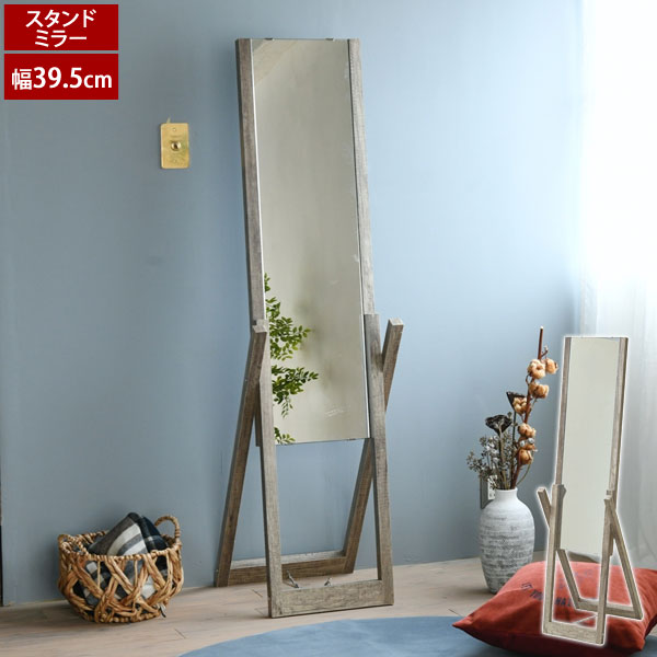 ■スタンドミラー 姿見 幅39.5cm グリーンインテリア おしゃれ シンプル 古木風 FAW-0008-JK