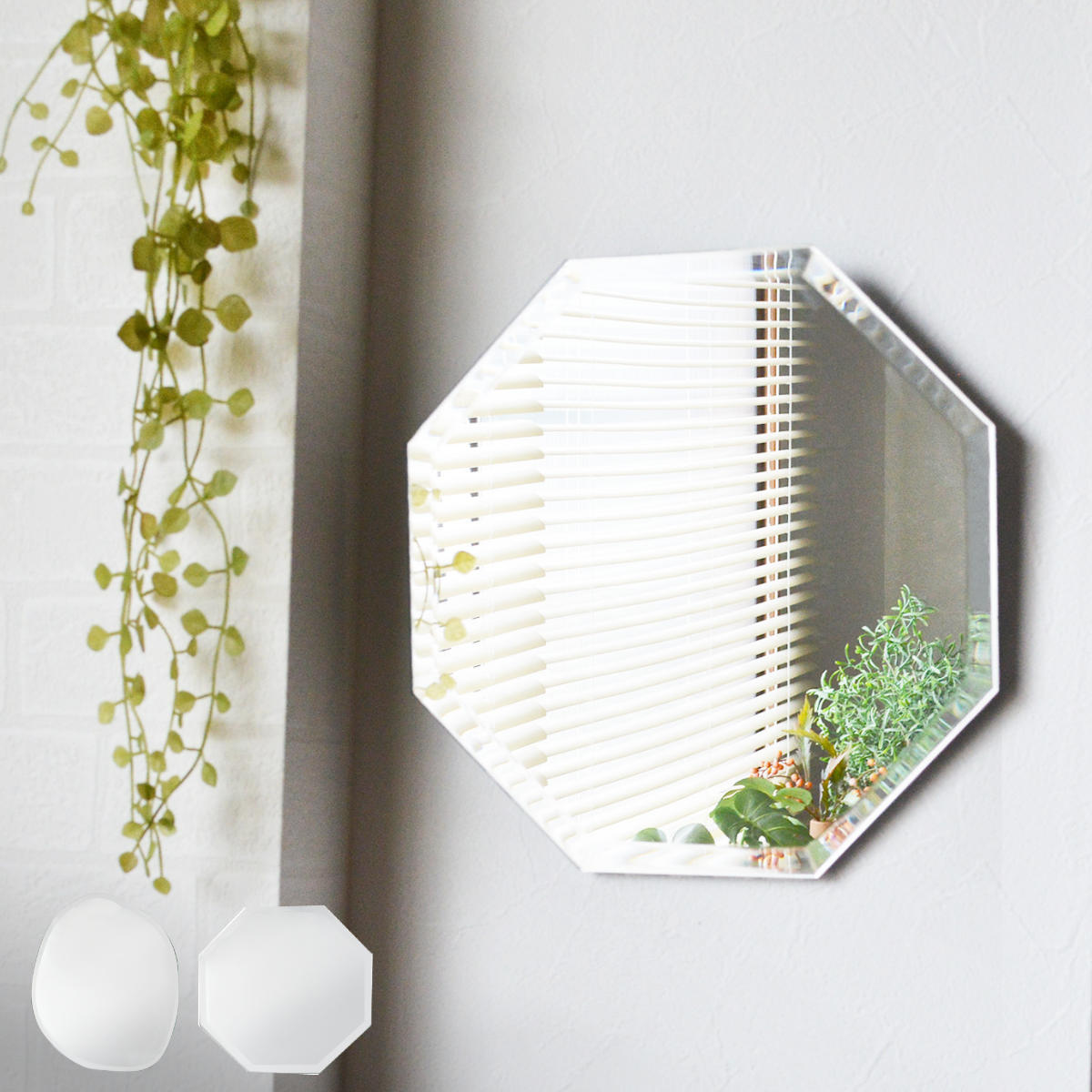 ■ウォールミラー モーメント ( 八角形 ウェーブ 鏡 かがみ 壁掛け ミラー 壁 姿見 玄関ミラー 飛散防止加工 身だしなみ ナチュラル 北欧