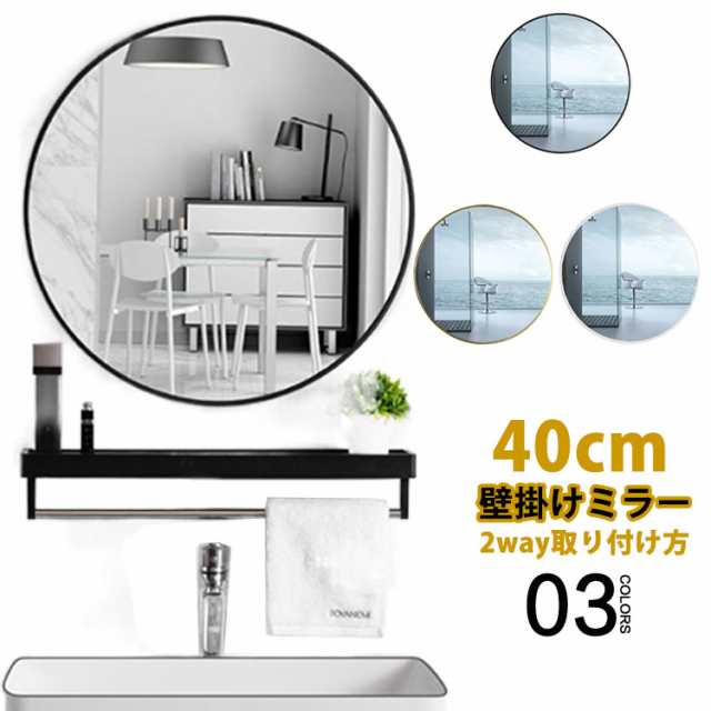 鏡 壁掛け 40cm 丸型 ミラー 飛散防止 ウォールミラー 玄関 姿見 おしゃれ 洗面所 洗面鏡 洗面台 トイレ 寝室 丸鏡 円形 壁鏡 ラウンド 2WAY 取り付け 壁掛け鏡 風水 かがみ 北欧 インテリア 新生活 雑貨 大きい 化粧