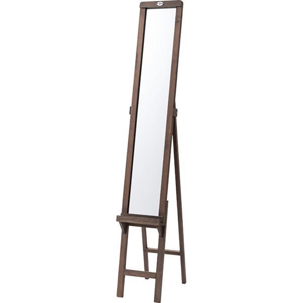 ■デザイン スタンドミラー 姿見 大型鏡 ナチュラル天然木 無垢材フレーム 木製枠ミラー ブラウン色 RE24TSM-80BR