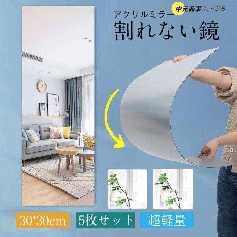 コンパクト最高!鏡 全身鏡 姿見 ミラー 壁掛け 柔らかい鏡 割れない鏡 風呂 浴室 (30×30cm 5枚セット) プレジュール 超軽量