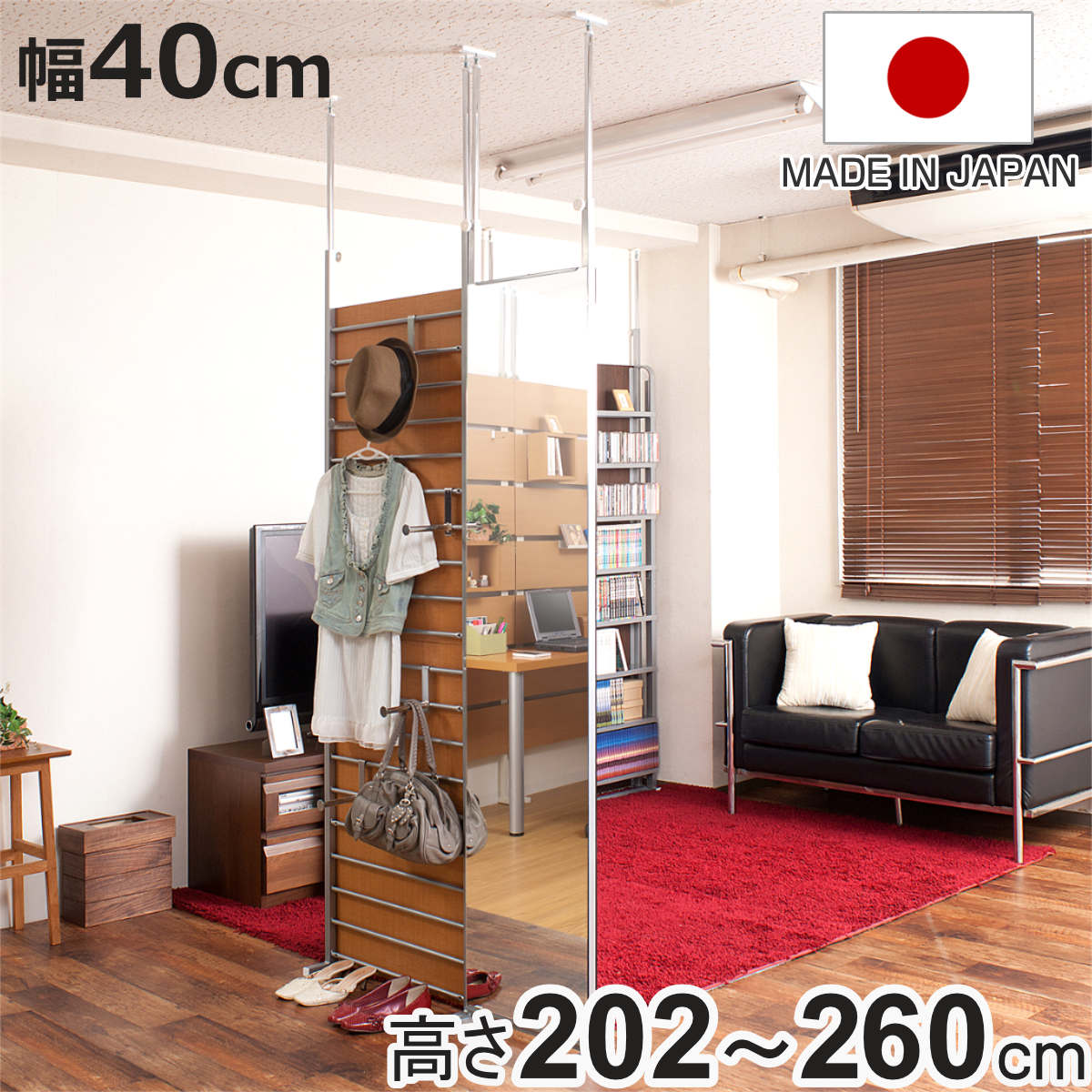 ■突っ張り 間仕切り両面ミラー 幅40cm 日本製 ( 突っ張りパーテーション 両面ミラー ミラー 鏡 両面 間仕切り 壁面収納 つっぱり 姿見 パ