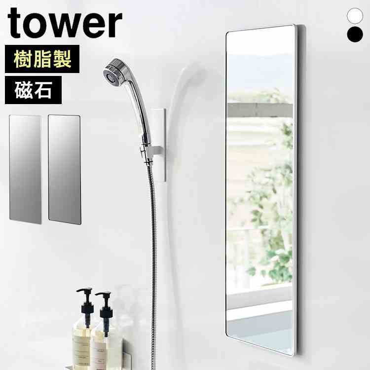 ■山崎実業 マグネットバスルームミラー 角型 ロング タワー tower 10304 10305 ホワイト ブラック 全身鏡 姿見 バスルームミラー マグネッ