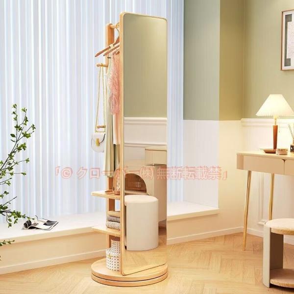 ■回転式 全身鏡 全身ミラー おしゃれ 収納 割れない ハンガー付き 木製 飛散防止 コンパクト 全身 スタンド 姿見鏡 姿見 三年保証 洋服収