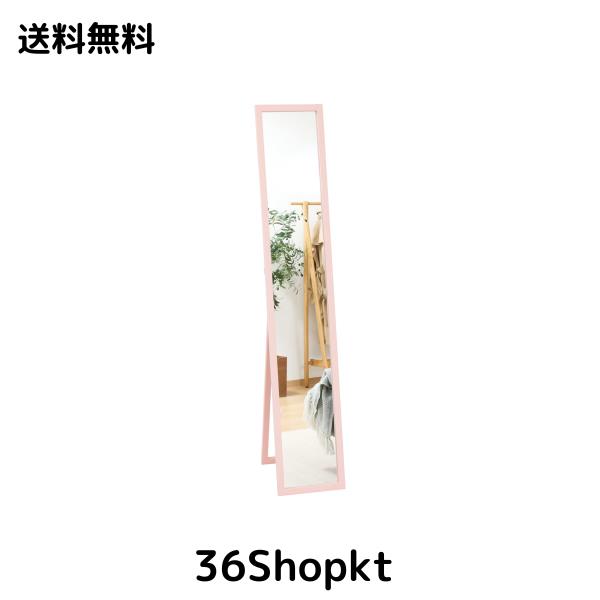 ■不二貿易 姿見 全身鏡 スタンドミラー 飛散防止加工 ルームミラー 木製 折りたたみ 一人暮らし 単身 幅27×奥行39×高さ147.5cm ピンク 7