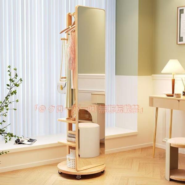 ■回転式 全身鏡 全身ミラー おしゃれ 収納 割れない 収納付き ハンガー付き 木製 飛散防止 コンパクト 軽量 全身 スタンド 姿見鏡 姿見