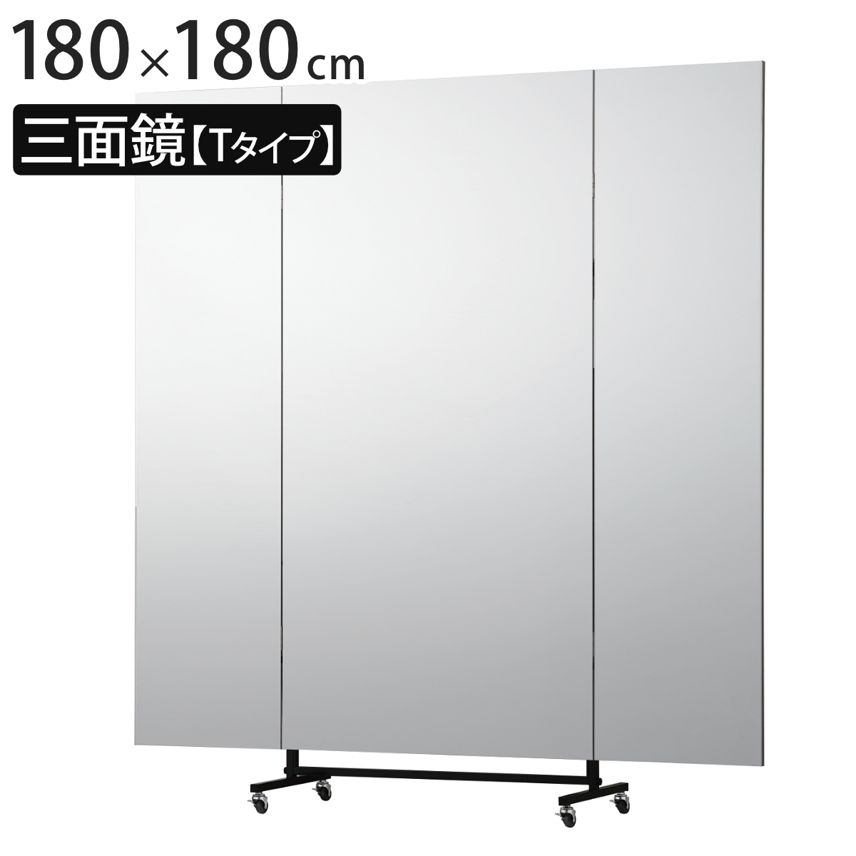 ■割れない鏡 リフェクスミラー キャスター付きスポーツミラー 三面鏡タイプ Tタイプ 姿見 180cm×180cm ( 鏡 全身 三面鏡 スタンドミラー