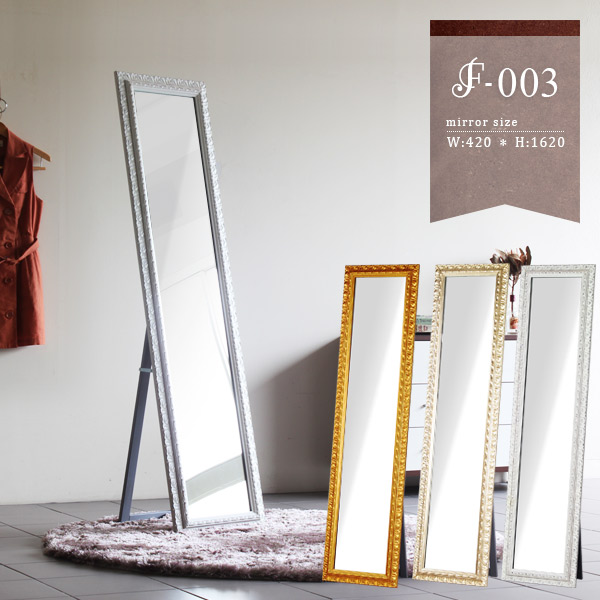 F-003SM3015サイズ:幅420 奥行45 高さ1620 mmスタンド時奥行:400mmミラー部サイズ:幅290 高さ1500 mmミラー厚:5mm梱包サイズ:幅440 奥行70 高さ1700 mm材質:本体木製、ポリレジン樹脂 仕上げゴールド:銅箔/シャンパンゴールド:アルミ箔コーティングの上からラッカー塗装/ホワイト:ラッカー塗装カラー:3色本体重量:10kg日本製完成品飛散防止処理(背面)壁掛け用フック・掛ひも付属ご注文状況により納期に変動がございます。最新の納期情報はカラー選択時にご確認ください。※オーダー商品につき、ご注文のキャンセル・変更につきましてはお届け前でありましても生産手配が済んでいるためキャンセル料(商品代金の50%)を頂戴いたします。※北海道・沖縄・離島は送料別途お見積り【ご注意】離島・郡部など一部配送不可地域あり。不可地域は通常配送便での玄関渡し建物の形態によっては別途追加料金を頂戴する場合あり吊上作業などが必要な場合、追加料金はお客様ご負担確認不十分などの理由による返品・返金不可商品・搬入経路のサイズ等充分にご確認願います0000a02571/0000