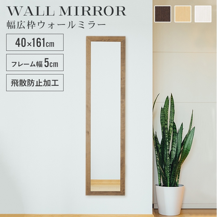 ■【値下げ】姿見 鏡 ウォールミラー スリム 高さ161 幅40 日本製 壁掛けミラー 吊り下げ 全身 全身鏡 幅広枠 おしゃれ 完成品