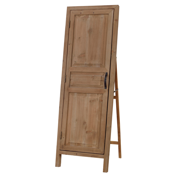 ■アンティーク調 スタンドミラー ライトブラウン色 姿見 小物置き フック付き 大型鏡 オーガニック無垢フレーム 木製ドア枠ミラー RE24TS