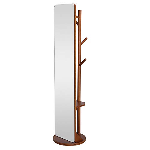 ■MiraHope 全身鏡 全身ミラー ハンガー付ミラー 洋服収納 回転ミラー 姿見 おしゃれ ミラー付き回転ハンガー163*40CM ブラウン