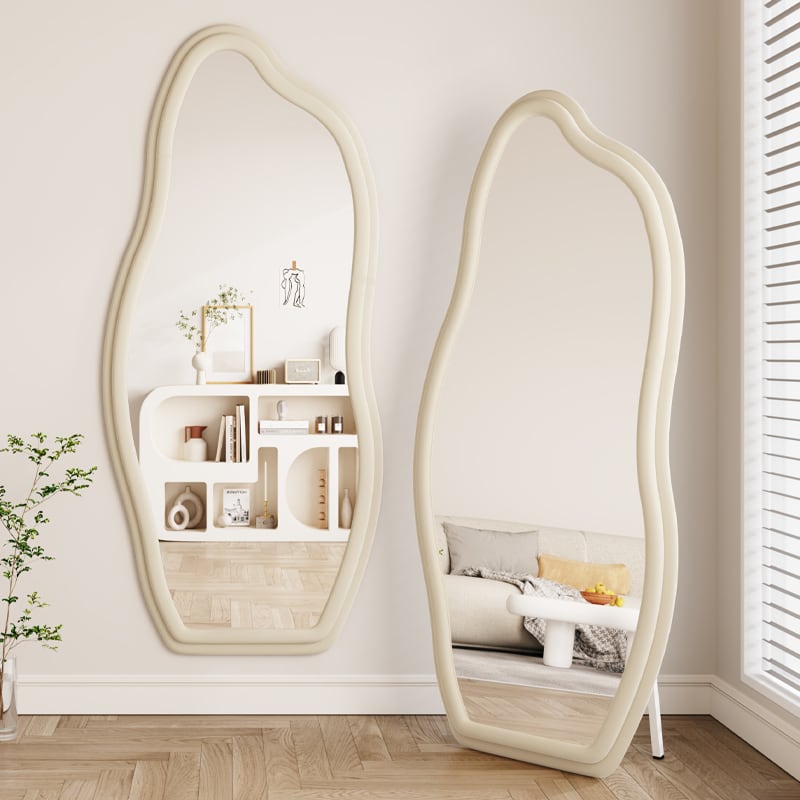 ■【送料無料】壁掛けミラー ウォールミラー ミラー 鏡 壁掛け おしゃれ 鏡 ぷっくりフレーム ウェーブ アーチ 姿見 全身鏡 韓国雑貨 北欧