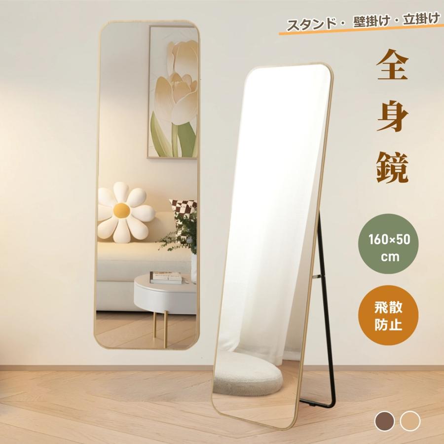 ■全身鏡 160×50CM 丸角フレーム 姿見鏡 北欧 木目調 スタンドミラー 壁掛けミラー 立てかけ おしゃれ 飛散防止 姿見 鏡 ミラー 韓国 モダ