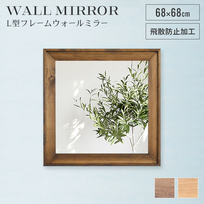 ■【値下げ】ウォールミラー 正方形 68cm 鏡 ミラー 姿見 飛散防止 日本製 木製 フレーム 木目調 ワンルーム 玄関 洗面所 おしゃれ