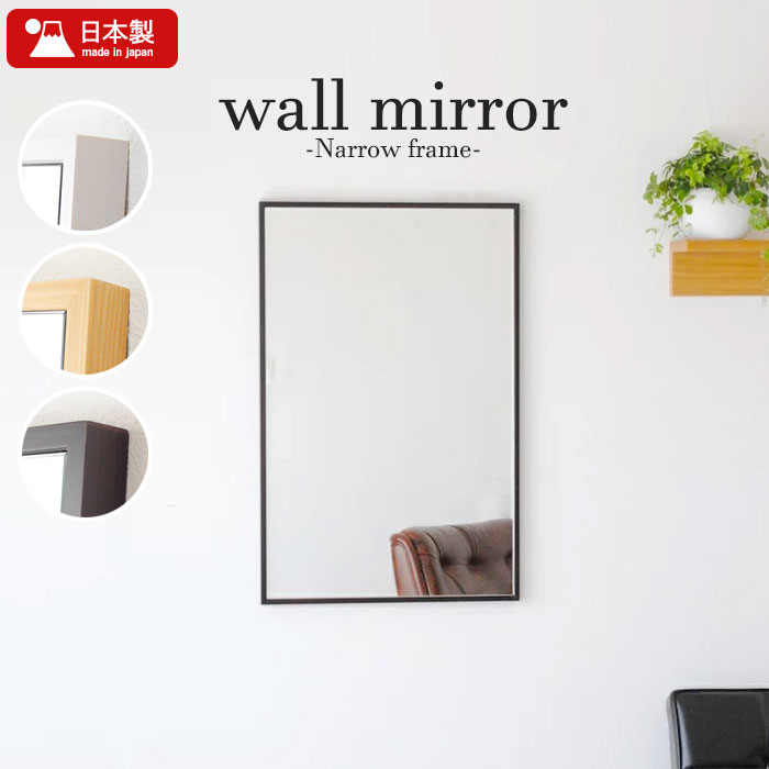 ■【値下げ】壁掛け ミラー 47×82 細枠 ウォールミラー 鏡 壁掛けミラー 姿見 ミラー 木製 フレーム 幅47 天然木 木製 日本製 北欧 おしゃ