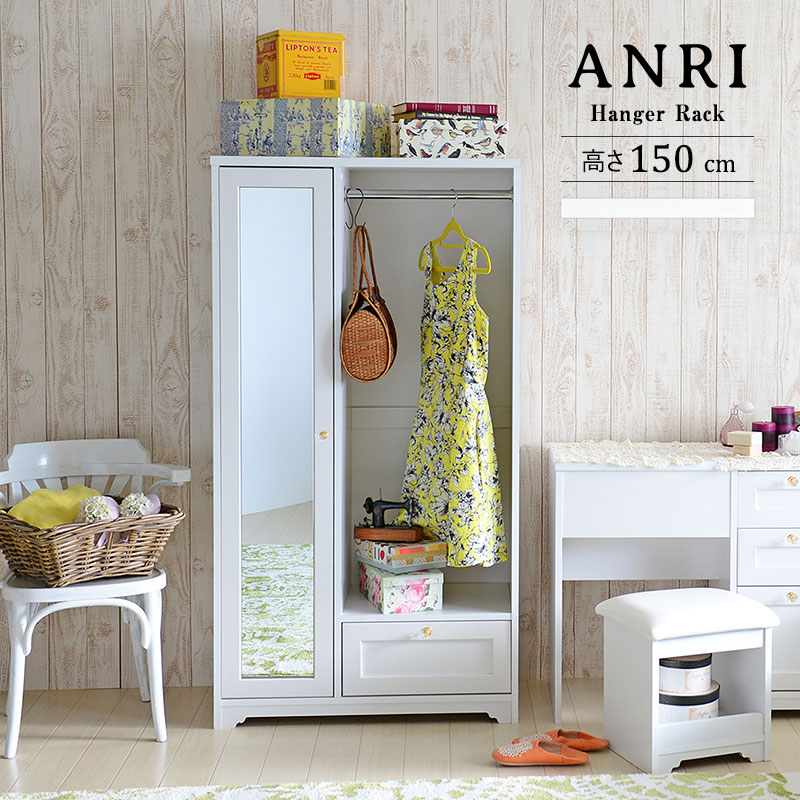 ■ANRI アンリ ハンガーラック ミラー付き 幅80cm (バーハンガー 鏡 スタンドミラー 姿見 整理整頓 ハンガー 洋服 アンティーク)